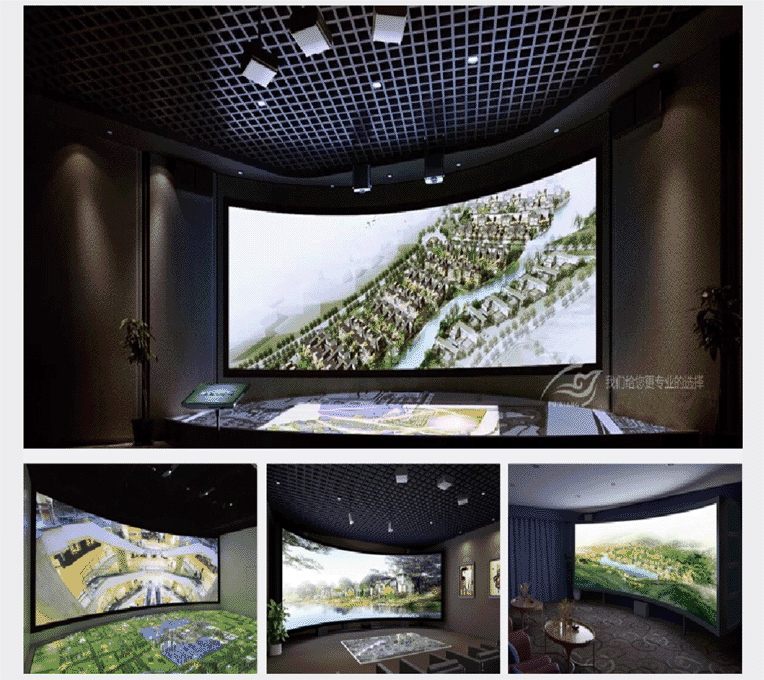 以多通道視景同步技術(shù)和數(shù)字圖像邊緣融合技術(shù)為支撐,將圖形計(jì)算機(jī)生成的實(shí)時(shí)數(shù)字影像實(shí)時(shí)輸出并顯示在一個(gè)超大幅面的平面投影幕墻上, 使觀看和參與者獲得更大的顯示尺寸、更寬的視野、更多的顯示內(nèi)容、更高的顯示分辨率、更具沖擊力和沉浸感的視覺效果。