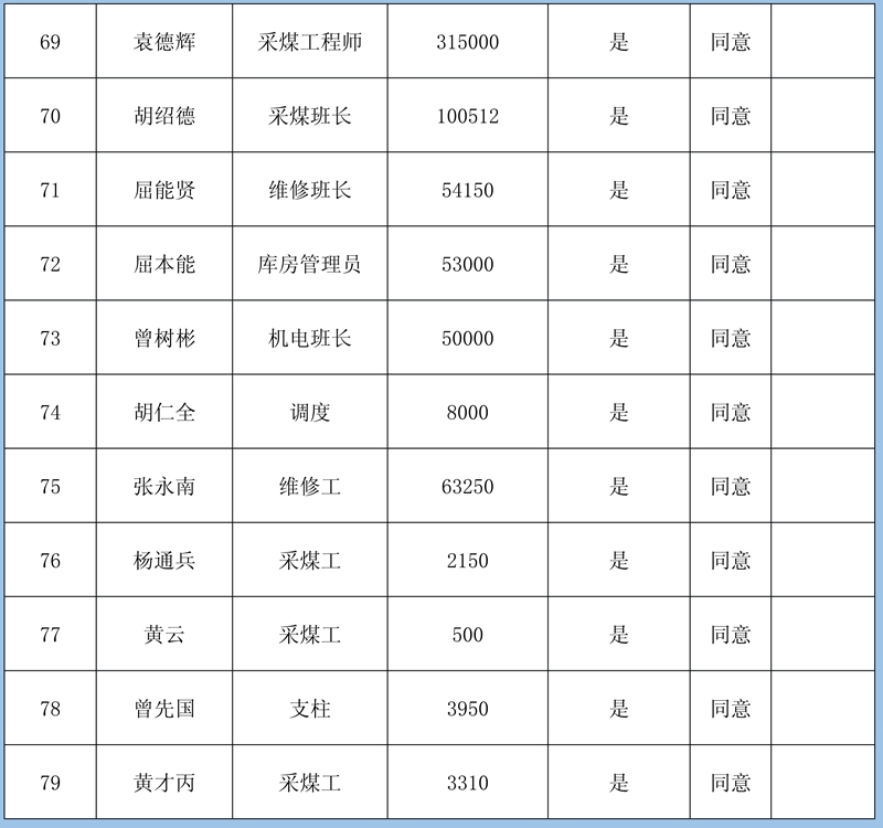 3、其他情況:金竹林煤礦原法人是李慶曾,2008年李慶曾轉(zhuǎn)讓給馮守黨,股東當(dāng)時有馮守元、葉青榮。2020年12月因馮守黨個人征信出問題,法人轉(zhuǎn)給黃益區(qū)。金竹林煤礦本次登記的47條欠薪申報,均提交了有煤礦方開出的工資欠條等相關(guān)依據(jù),煤礦方委托人已簽字蓋章認可。