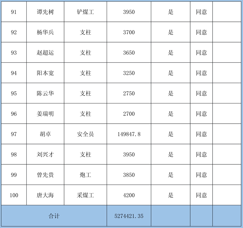 2、本次確認情況:經(jīng)初核確認,累計共收到41條欠薪證據(jù),涉及41人2539579元;勞資雙方已簽字蓋章確認30條欠薪證據(jù),涉及30人360444元;煤礦方未簽字確認11條欠薪證據(jù),涉及11人2179135元。