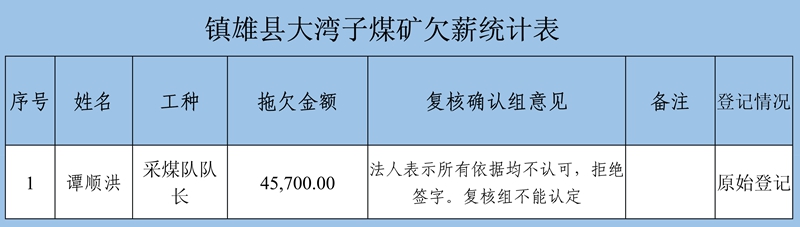 五、大灣子煤礦欠薪復(fù)核確認情況