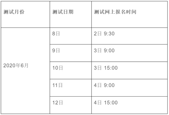 1.報名及測試時間:2020年6月暫無測試安排