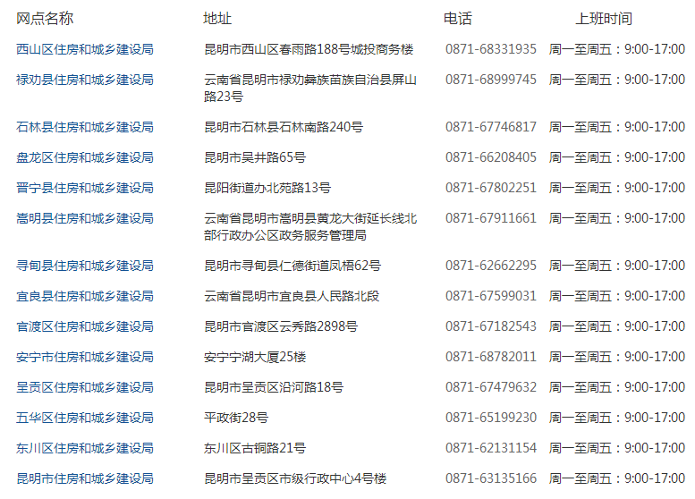 昆明各區(qū)縣住房和城鄉(xiāng)建設局地址及聯(lián)系方式
