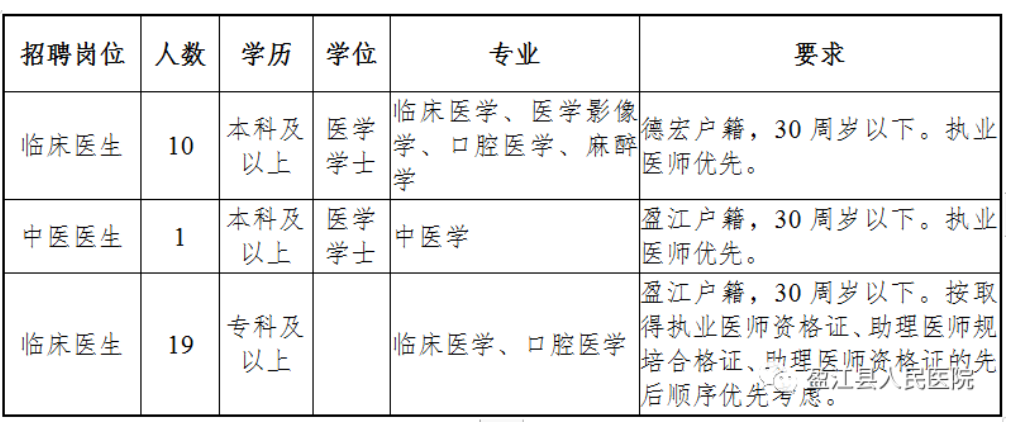 德宏州盈江縣人民醫(yī)院招聘編外合同制衛(wèi)生專(zhuān)業(yè)技術(shù)人員第一次公告