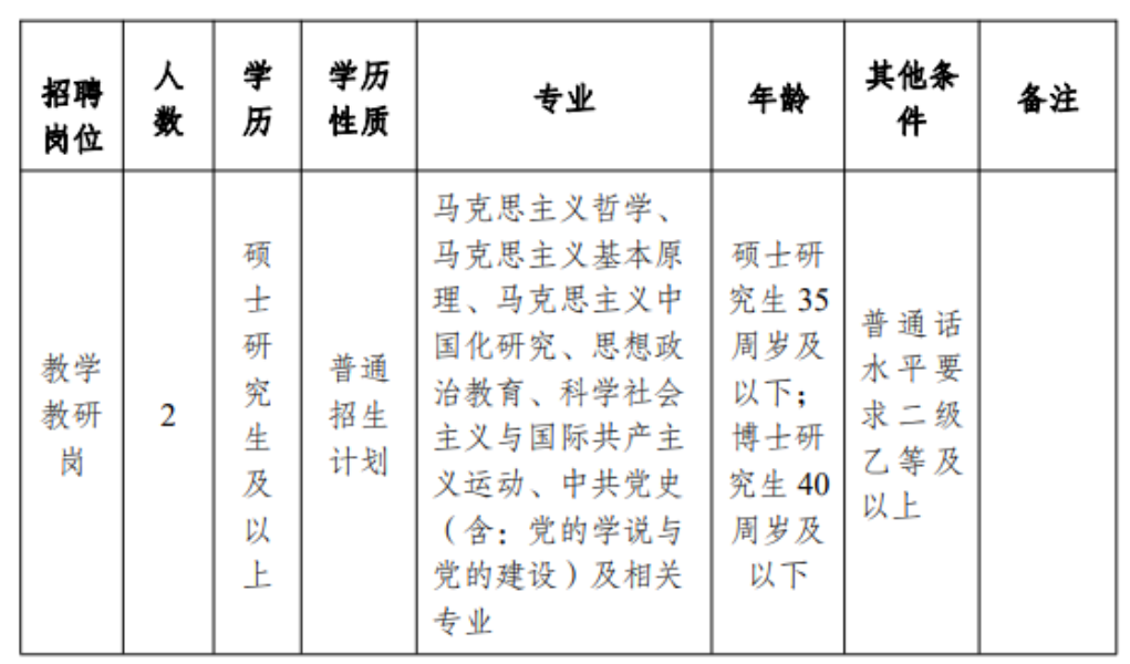 本次招聘崗位為楊善洲干部學(xué)院事業(yè)編制內(nèi)教師崗位,招聘人數(shù)2人,專門從事楊善洲干部學(xué)院教學(xué)和教研工作,參與課程、課件、教材和現(xiàn)場(chǎng)教學(xué)點(diǎn)的開發(fā)與研究,承擔(dān)培訓(xùn)班的授課任務(wù)等具體工作,崗位要求如下: