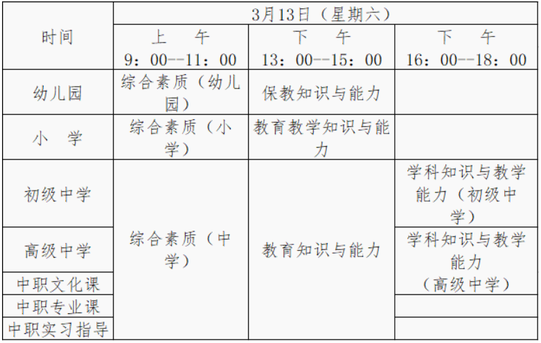 (二)考試時間:2021年3月13日,所有考試科目均采用紙筆方式進(jìn)行,具體安排如下: